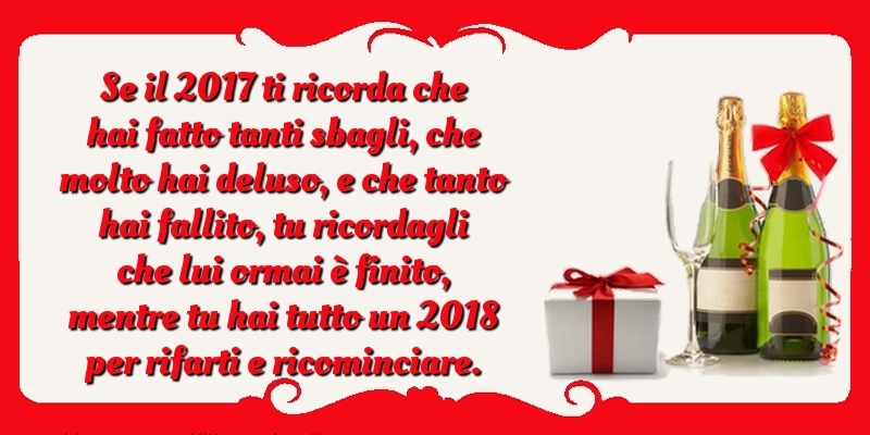 Se il 2017 ti ricorda che hai fatto tanti sbagli, che molto hai deluso, e che tanto hai fallito, tu ricordagli che lui ormai è finito, mentre tu hai tutto un 2018 per rifarti e ricominciare.