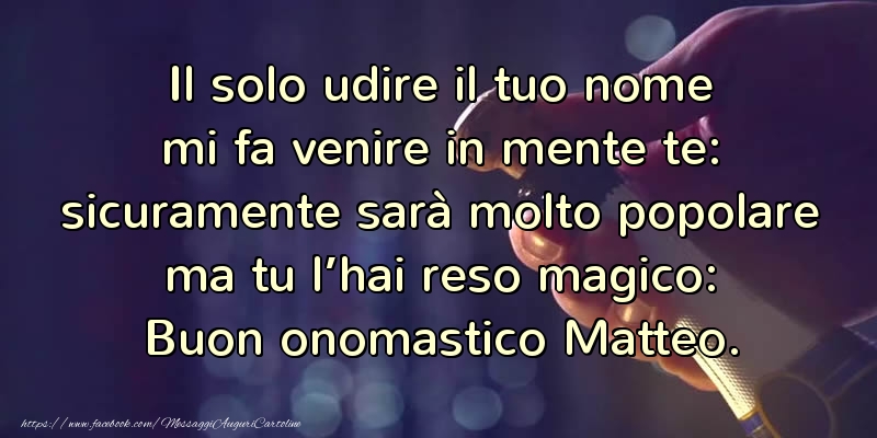 Il solo udire il tuo nome mi fa venire in mente te: sicuramente sarà molto popolare ma tu l’hai reso magico: Buon onomastico Matteo.