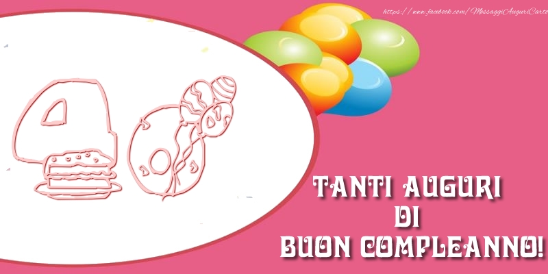 A 40 anni si entra in una fase della vita che risplende di maturità e saggezza. Ogni biglietto è una celebrazione della vostra bellezza e dei vostri successi, in attesa del prossimo decennio che promette di essere altrettanto stimolante e appagante. Buon compleanno per un periodo bellissimo e ricco di esperienze! Il biglietto d'auguri per i 40 anni cespugli di palloncini può essere scaricato o inviato sui social media. L'immagine misura [L] x 400px e il testo Tanti auguri di buon compleanno per 40 anni!.