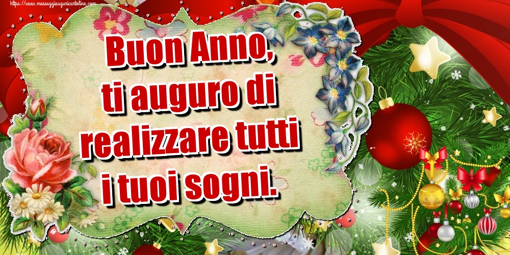 Buon Anno, ti auguro di realizzare tutti i tuoi sogni. Cartoline auguri Buon Anno, cartoline di Buon Anno, biglietti di Buon Anno, cartoline di Buon Anno originali