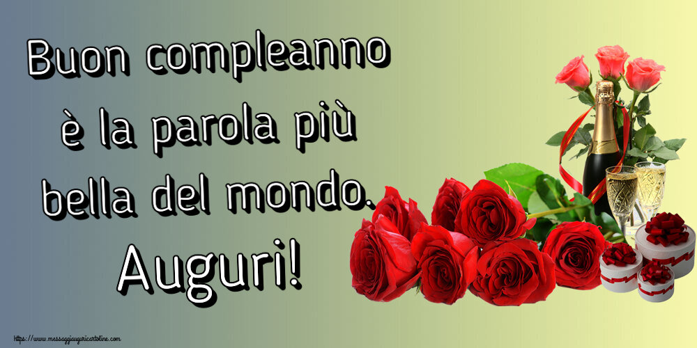 Buon compleanno è la parola più bella del mondo. Auguri! ~ composizione con champagne e rose