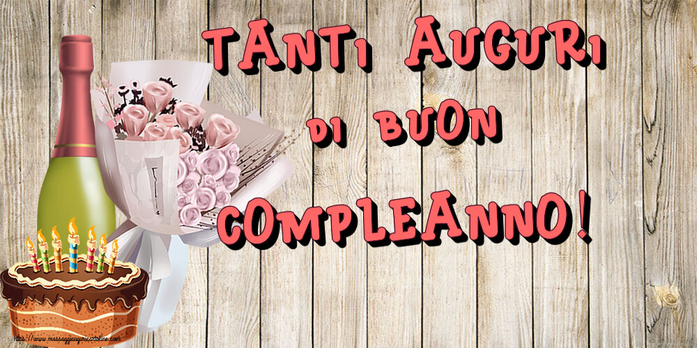Tanti auguri di Buon Compleanno! ~ bouquet di fiori, champagne e torta