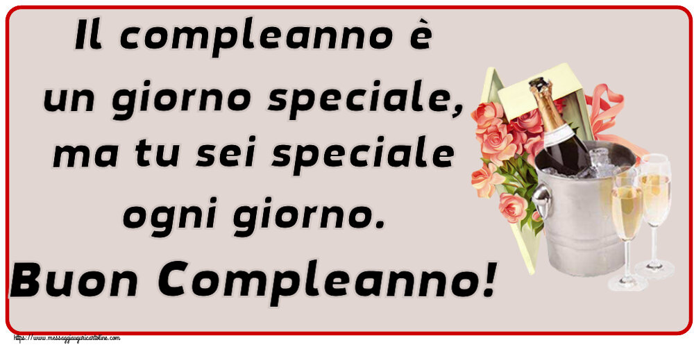 Il compleanno è un giorno speciale, ma tu sei speciale ogni giorno. Buon Compleanno! ~ champagne e rose da festa
