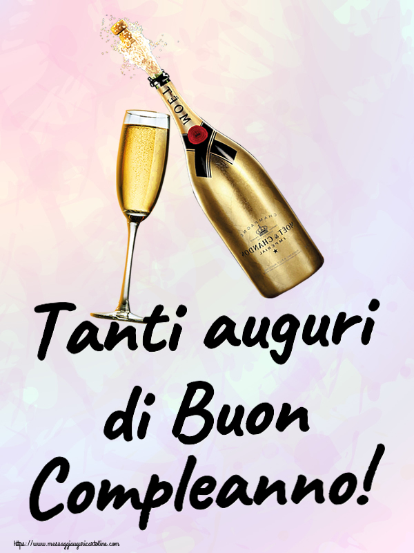 Cartoline di compleanno - Tanti auguri di Buon Compleanno! ~ champagne al bicchiere - messaggiauguricartoline.com