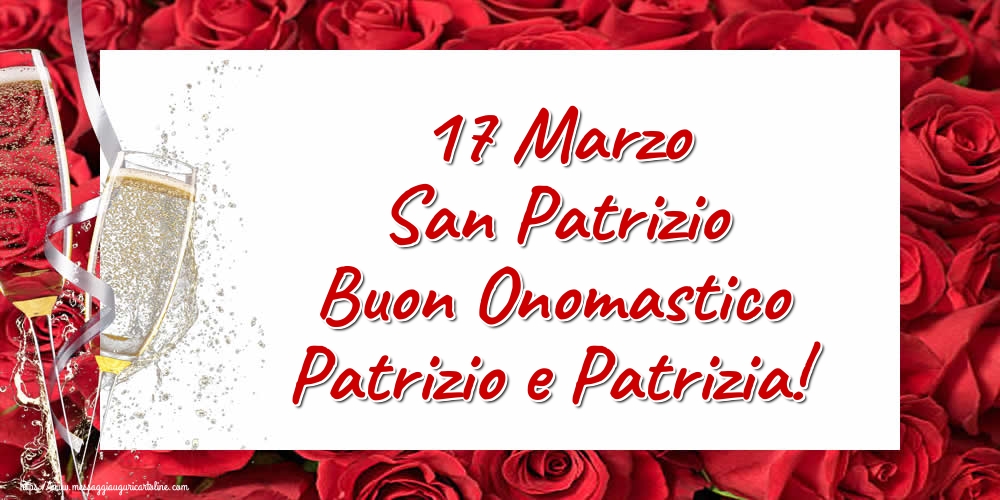 17 Marzo - San Patrizio Gli auguri più sinceri ed affettuosi per il tuo onomastico! Ti voglio bene. 17 Marzo San Patrizio Tantissimi auguri di buon onomastico Patrizio e Patrizia! Tantissimi auguri di buon onomastico Patrizia! 17 Marzo San Patrizio 17 Marzo San Patrizio Tantissimi auguri di buon onomastico Patrick e Patrice! Tantissimi auguri di buon onomastico Patrizio! 17 Marzo San Patrizio 17 Marzo San Patrizio Tantissimi Auguri di Buon Onomastico!