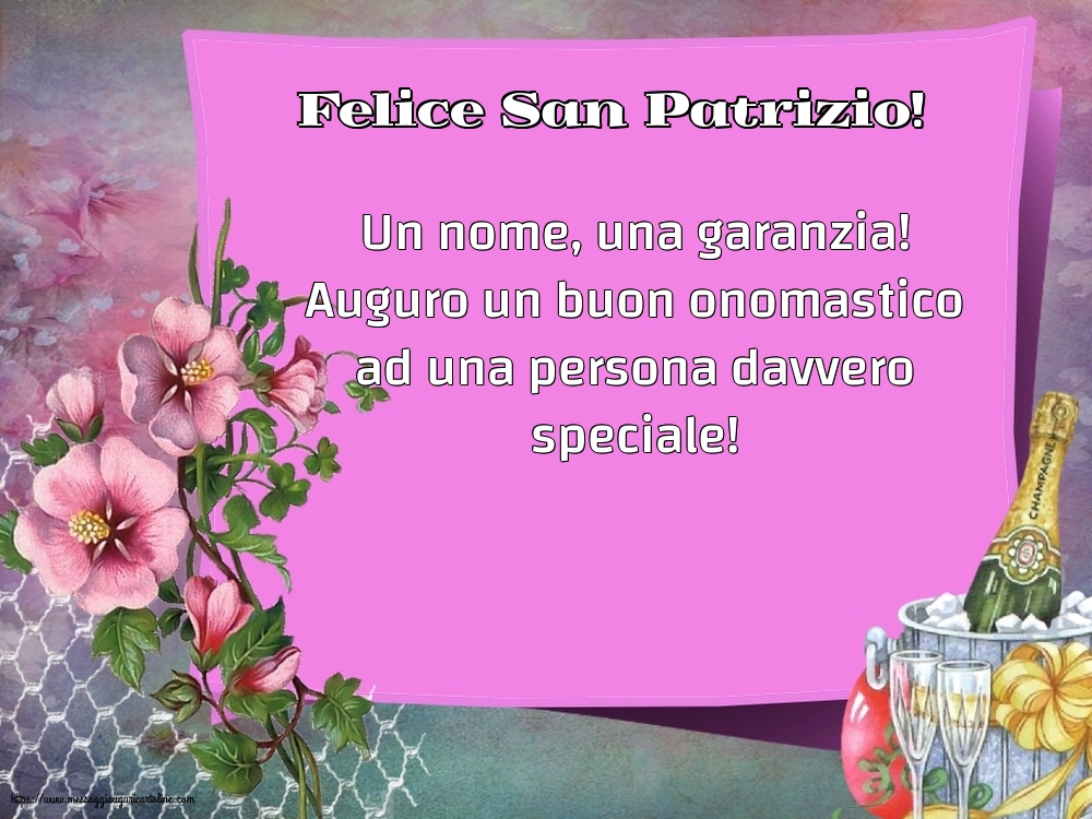 17 Marzo - San Patrizio Gli auguri più sinceri ed affettuosi per il tuo onomastico! Ti voglio bene. 17 Marzo San Patrizio Tantissimi auguri di buon onomastico Patrizio e Patrizia! Tantissimi auguri di buon onomastico Patrizia! 17 Marzo San Patrizio 17 Marzo San Patrizio Tantissimi auguri di buon onomastico Patrick e Patrice! Tantissimi auguri di buon onomastico Patrizio! 17 Marzo San Patrizio 17 Marzo San Patrizio Tantissimi Auguri di Buon Onomastico!