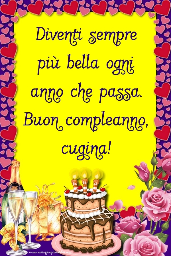 Cartoline virtuali per Cugina, bigliettini per Cugina di compleanno, auguri, l'amore e molte altre