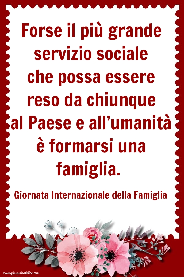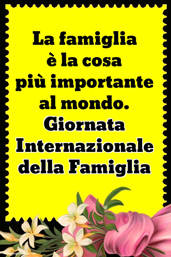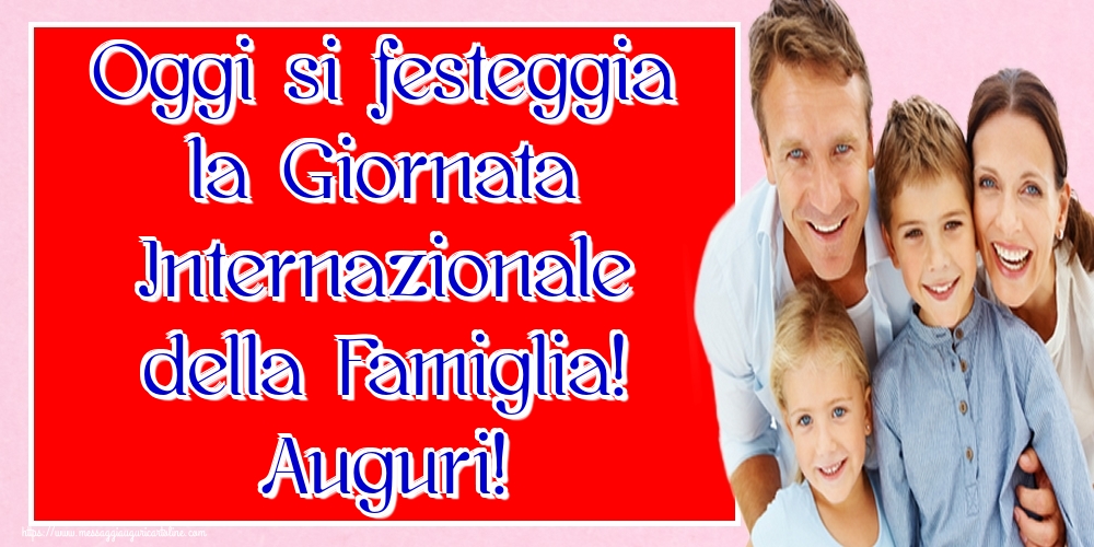 Il 15 Maggio in tutto il mondo si festeggia la Giornata Internazionale della Famiglia, organizzata dall'ONU sin dal 1994. La famiglia è "il fondamentale gruppo sociale e l'ambiente naturale per lo sviluppo e il benessere di tutti i suoi membri, in particolare i bambini" ricorda l'Onu che ribadisce “ il diritto di ogni bambino ad avere una famiglia che lo protegga, trasmettendogli quei valori positivi che lo supporteranno per tutta la vita”.