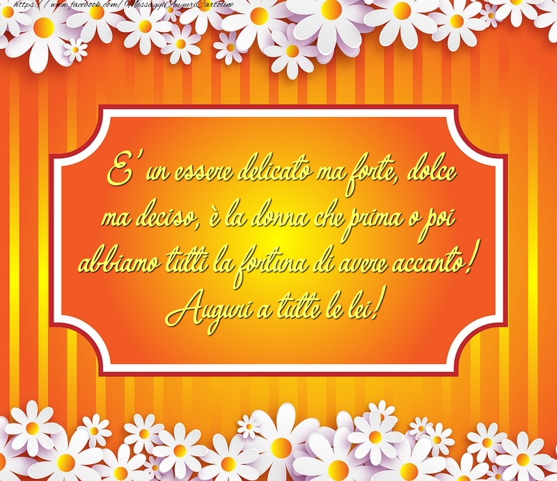 E' un essere delicato ma forte, dolce ma deciso, è la donna che prima o poi abbiamo tutti la fortuna di avere accanto! Auguri a tutte le lei!