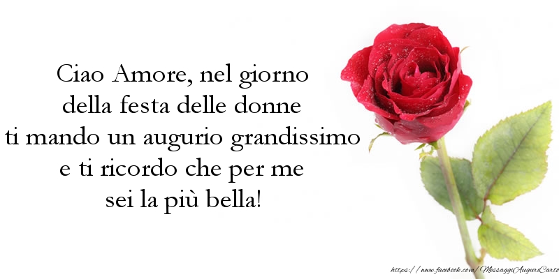 Ciao Amore, nel giorno della festa delle donne ti mando un augurio grandissimo e ti ricordo che per me sei la più bella!