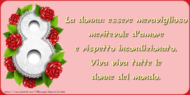 La donna: essere meraviglioso meritevole d'amore e rispetto incondizionato. Viva viva tutte le donne del mondo.