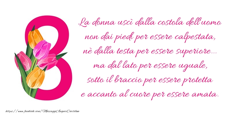 Messaggi di 8 Marzo - La donna uscì dalla costola dell'uomo non dai piedi per essere calpestata - messaggiauguricartoline.com