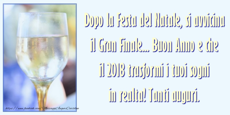 Dopo la Festa del Natale, si avvicina il Gran Finale... Buon Anno e che il 2018 trasformi i tuoi sogni in realta! Tanti auguri.