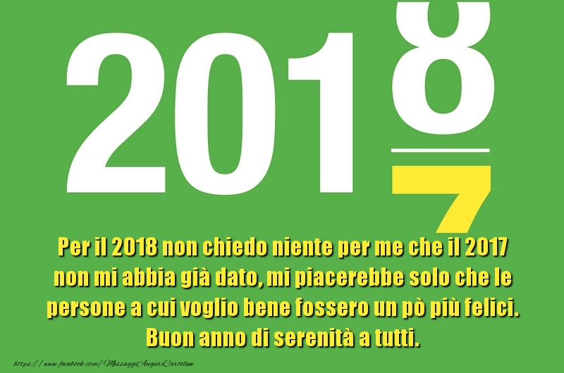 Per il 2018 non chiedo niente per me che il 2017 non mi abbia già dato, mi piacerebbe solo che le persone a cui voglio bene fossero un pò più felici. Buon anno di serenità a tutti.
