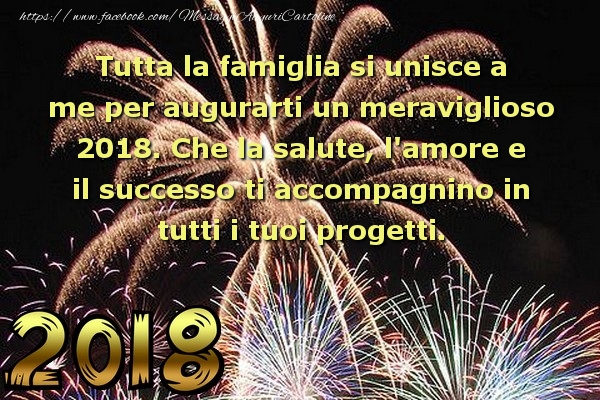 Tutta la famiglia si unisce a me per augurarti un meraviglioso 2018. Che la salute, l'amore e il successo ti accompagnino in tutti i tuoi progetti.