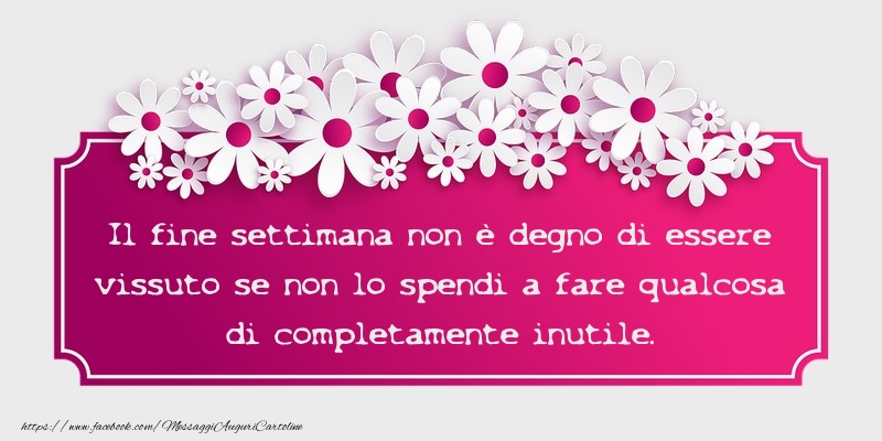 Il fine settimana non è degno di essere vissuto se non lo spendi a fare qualcosa di completamente inutile.