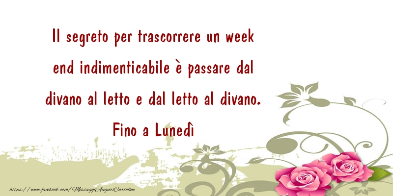Il segreto per trascorrere un week end indimenticabile è passare dal divano al letto e dal letto al divano. Fino a Lunedì