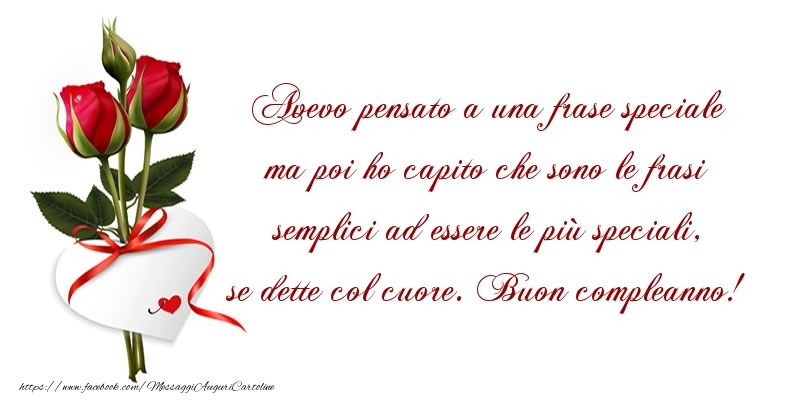 Avevo pensato a una frase speciale ma poi ho capito che sono le frasi semplici ad essere le più speciali, se dette col cuore. Buon compleanno!