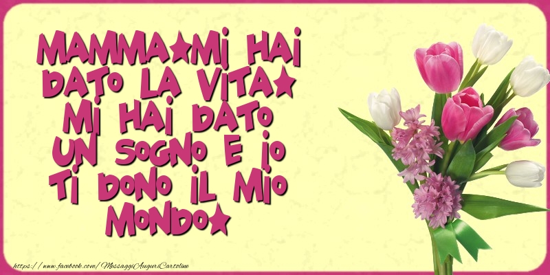 Mamma,mi hai dato la vita, mi hai dato un sogno e io ti dono il mio mondo.
