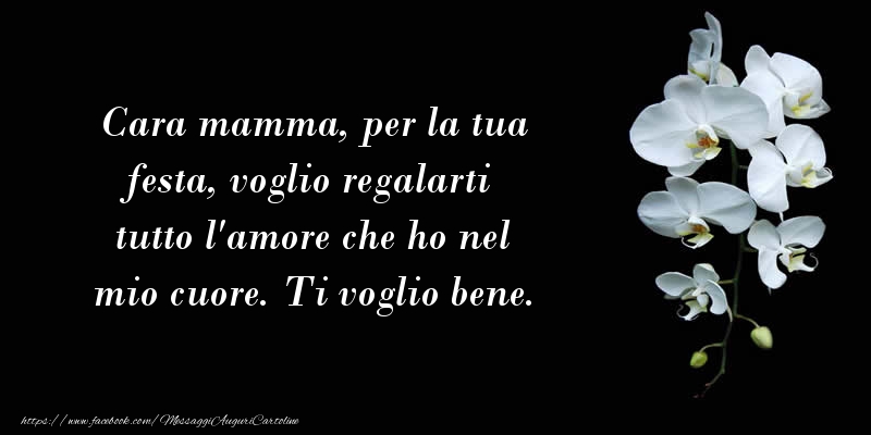 Cara mamma, per la tua festa, voglio regalarti tutto l'amore che ho nel mio cuore. Ti voglio bene.