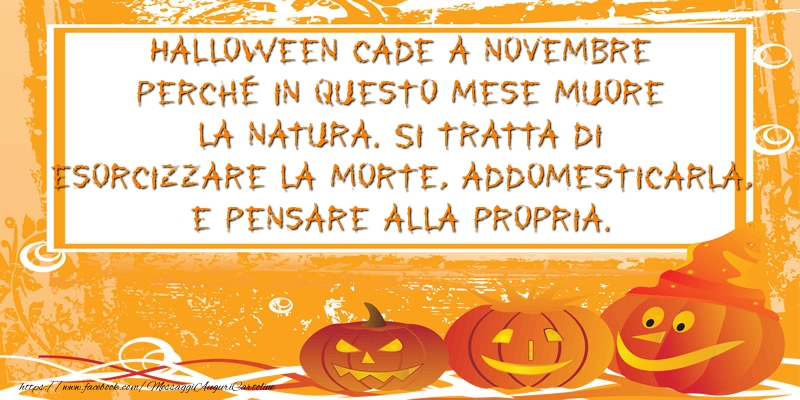 Halloween cade a novembre perché in questo mese muore la natura. Si tratta di esorcizzare la morte, addomesticarla, e pensare alla propria.