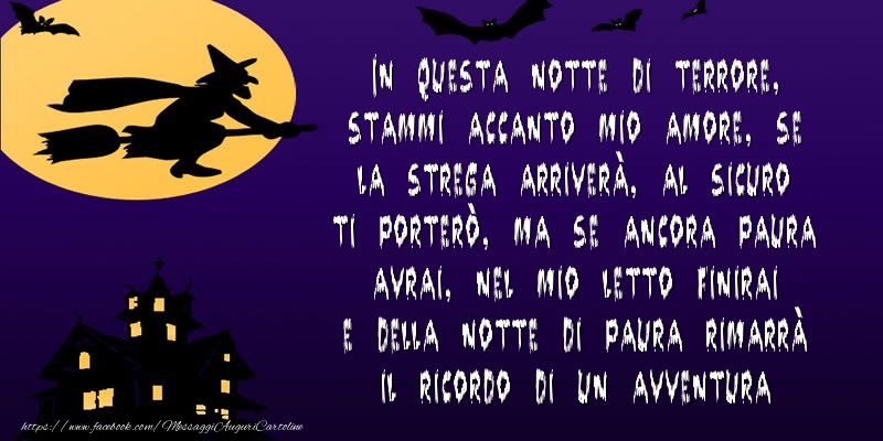 In questa notte di terrore, stammi accanto mio amore, se la strega arriverà, al sicuro ti porterò, ma se ancora paura avrai, nel mio letto finirai e della notte di paura rimarrà il ricordo di un avventura .
