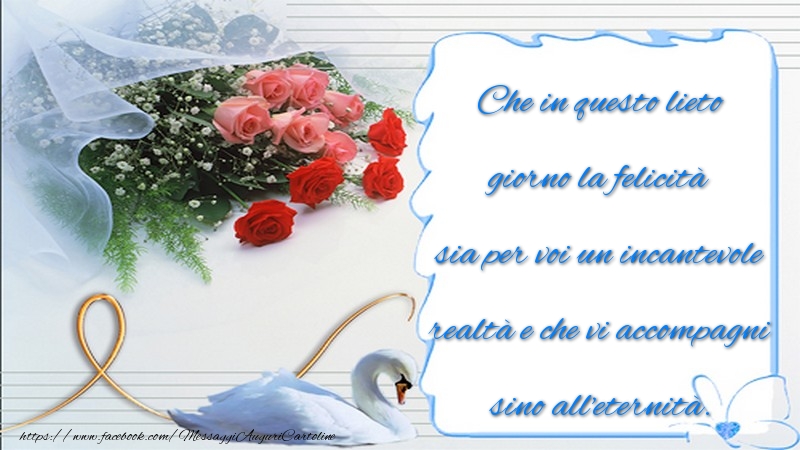Che in questo lieto giorno la felicità sia per voi un incantevole realtà e che vi accompagni sino all'eternità.