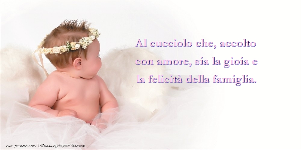 Al cucciolo che, accolto con amore, sia la gioia e la felicità della famiglia.