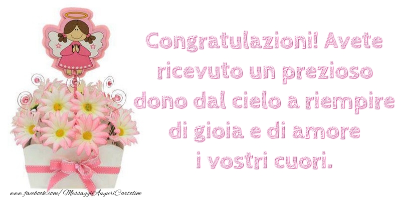 Congratulazioni! Avete ricevuto un prezioso dono dal cielo a riempire di gioia e di amore i vostri cuori.