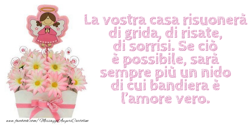 La vostra casa risuonerà di grida, di risate, di sorrisi. Se ciò è possibile, sarà sempre più un nido di cui bandiera è l’amore vero.