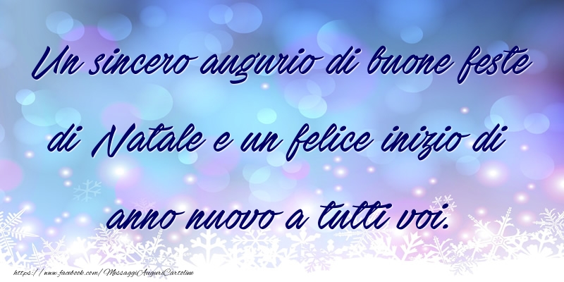 Un sincero augurio di buone feste di Natale e un felice inizio di anno nuovo a tutti voi.