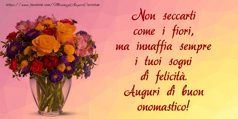 Non seccarti come i fiori, ma innaffia sempre i tuoi sogni di felicità. Auguri di buon onomastico!