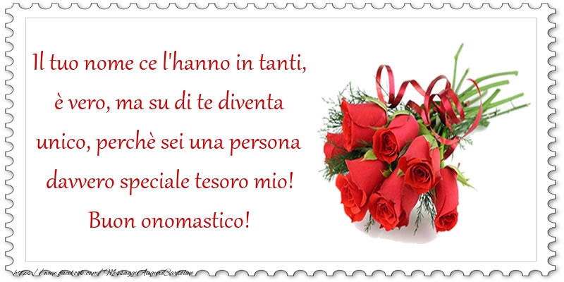 Il tuo nome ce l'hanno in tanti, è vero, ma su di te diventa unico, perchè sei una persona davvero speciale tesoro mio! Buon onomastico!