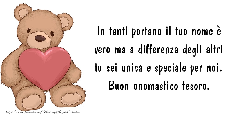 In tanti portano il tuo nome è vero ma a differenza degli altri tu sei unica e speciale per noi. Buon onomastico tesoro.