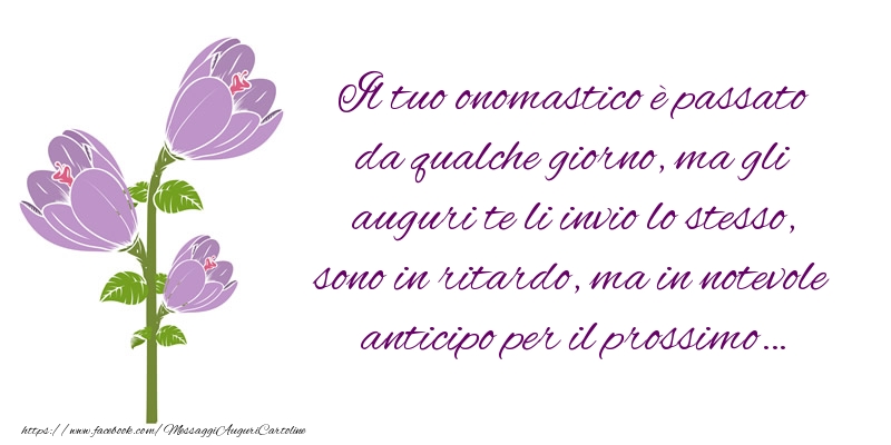 Il tuo onomastico è passato da qualche giorno, ma gli auguri te li invio lo stesso, sono in ritardo, ma in notevole anticipo per il prossimo…
