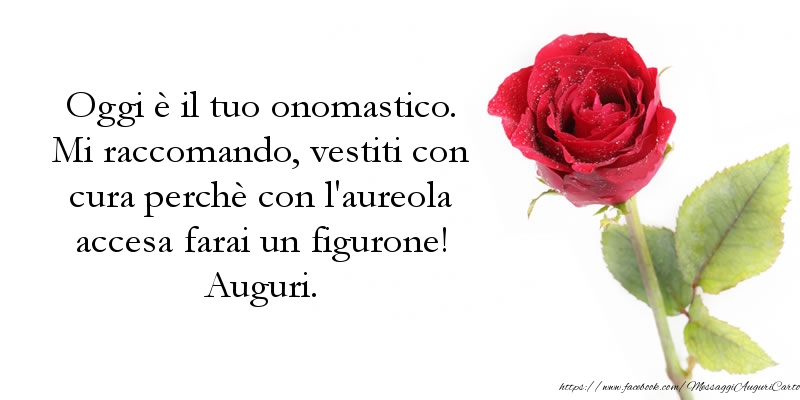 Oggi è il tuo onomastico. Mi raccomando, vestiti con cura perchè con l'aureola accesa farai un figurone! Auguri.