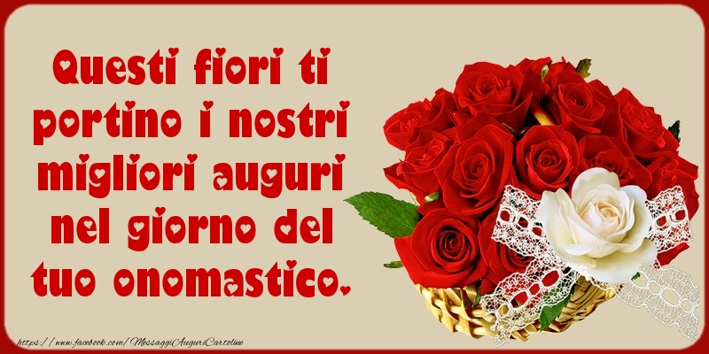 Questi fiori ti portino i nostri migliori auguri nel giorno del tuo onomastico.