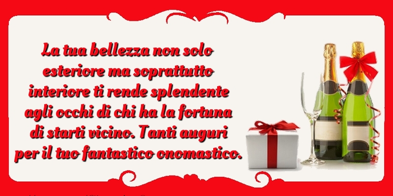 La tua bellezza non solo esteriore ma soprattutto interiore ti rende splendente agli occhi di chi ha la fortuna di starti vicino. Tanti auguri per il tuo fantastico onomastico.