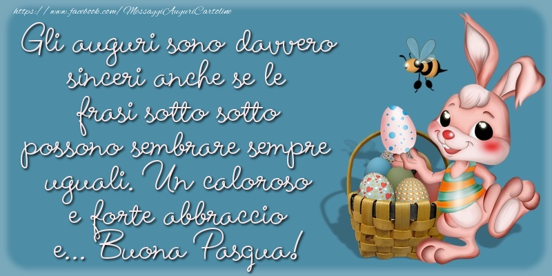 Gli auguri sono davvero sinceri anche se le frasi sotto sotto possono sembrare sempre uguali. Un caloroso e forte abbraccio e… Buona Pasqua!
