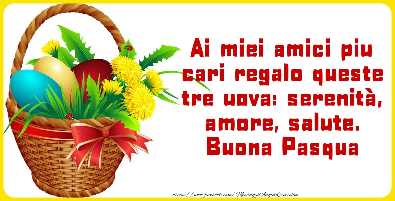 Ai miei amici piu cari regalo queste tre uova: serenità, amore, salute. Buona Pasqua