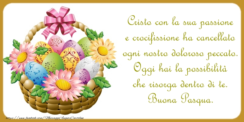Cristo con la sua passione e crocifissione ha cancellato ogni nostro doloroso peccato. Oggi hai la possibilità che risorga dentro di te. Buona Pasqua.