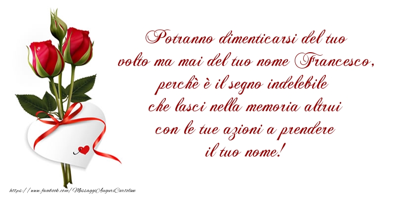 Potranno dimenticarsi del tuo volto ma mai del tuo nome Francesco, perchè è il segno indelebile che lasci nella memoria altrui con le tue azioni a prendere il tuo nome!