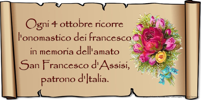 Ogni 4 ottobre ricorre l'onomastico dei francesco in memoria dell'amato San Francesco d'Assisi, patrono d'Italia.