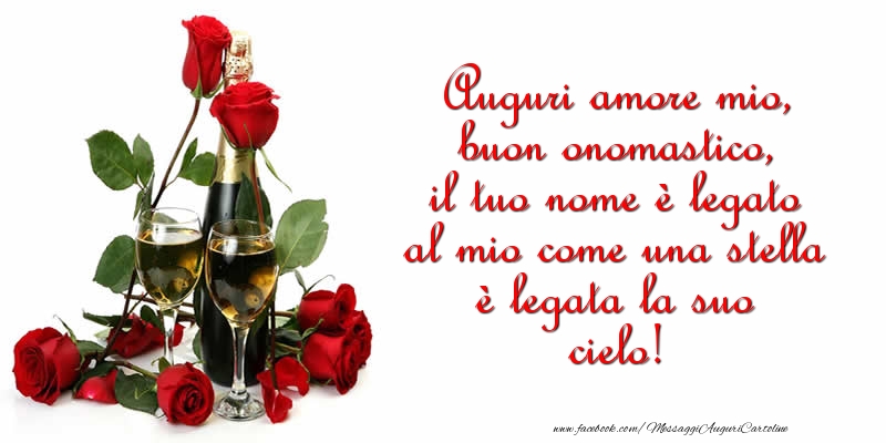 Auguri amore mio, buon onomastico, il tuo nome è legato al mio come una stella è legata la suo cielo!