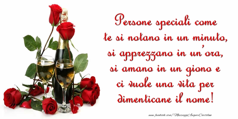 Persone speciali come te si notano in un minuto, si apprezzano in un’ora, si amano in un giono e ci vuole una vita per dimenticane il nome!