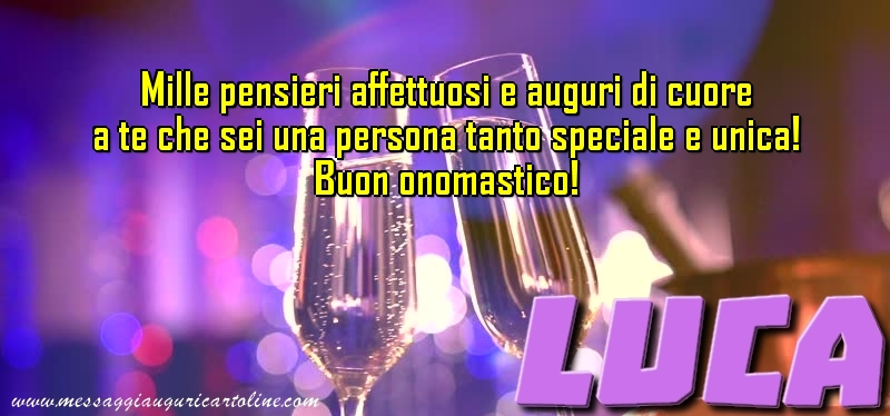 Mille pensieri affettuosi e auguri di cuore a te che sei una persona tanto speciale e unica! Buon onomastico!