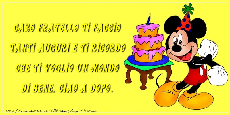 Caro fratello ti faccio tanti auguri e ti ricordo che ti voglio un mondo di bene, ciao a dopo.