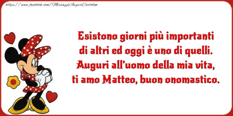 Esistono giorni più importanti di altri ed oggi è uno di quelli. Auguri all’uomo della mia vita, ti amo Matteo, buon onomastico.