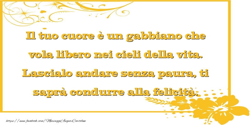 Il tuo cuore è un gabbiano che vola libero nei cieli della vita. Lascialo andare senza paura, ti saprà condurre alla felicità.