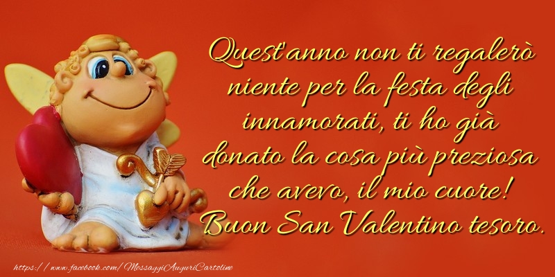 Quest'anno non ti regalerò niente per la festa degli innamorati, ti ho già donato la cosa più preziosa che avevo, il mio cuore! Buon San Valentino tesoro.